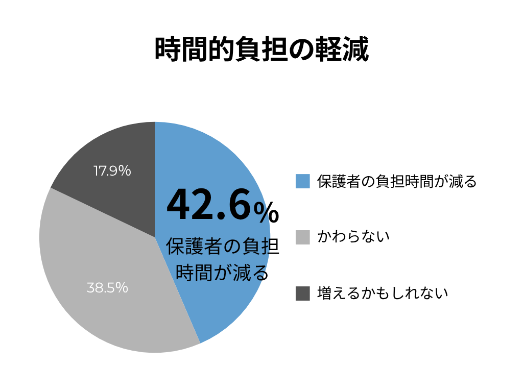 自宅学習支援により「保護者の負担時間が減る」との回答が約4割。